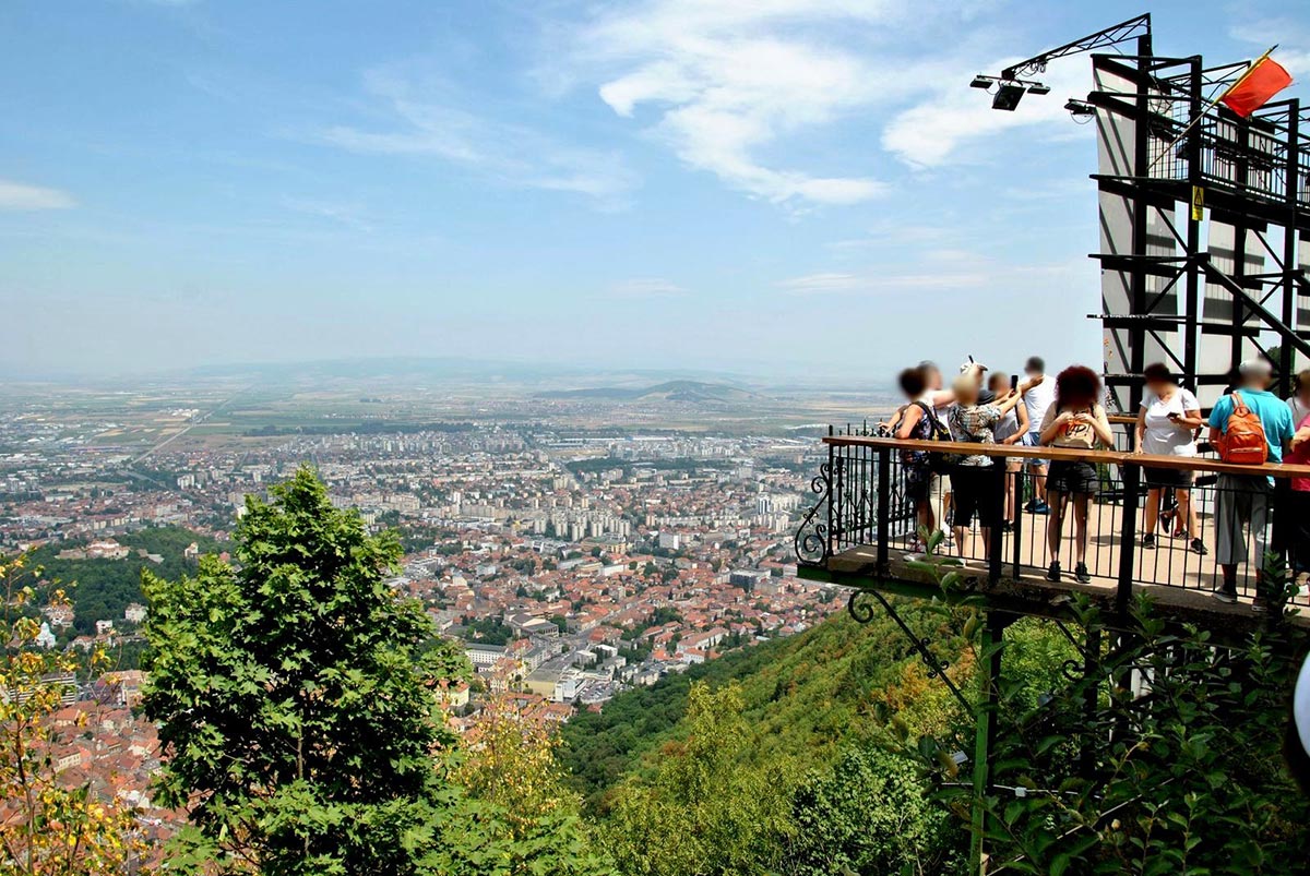 Chiar lângă indicatorul BRASOV, se poate admira o priveliște minunată asupra orașului și a regiunii înconjurătoare.