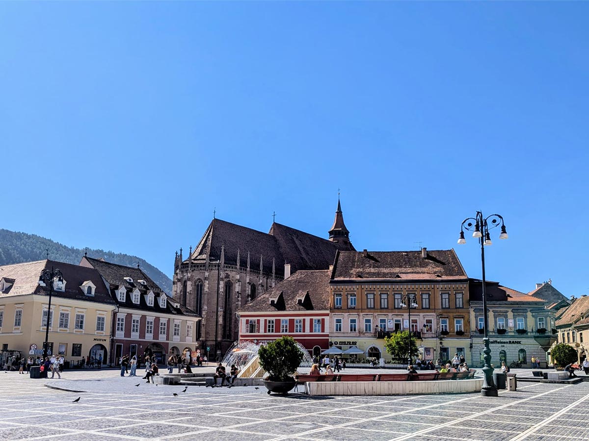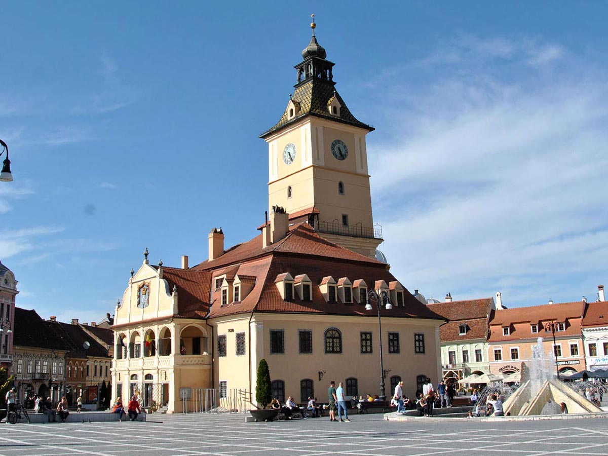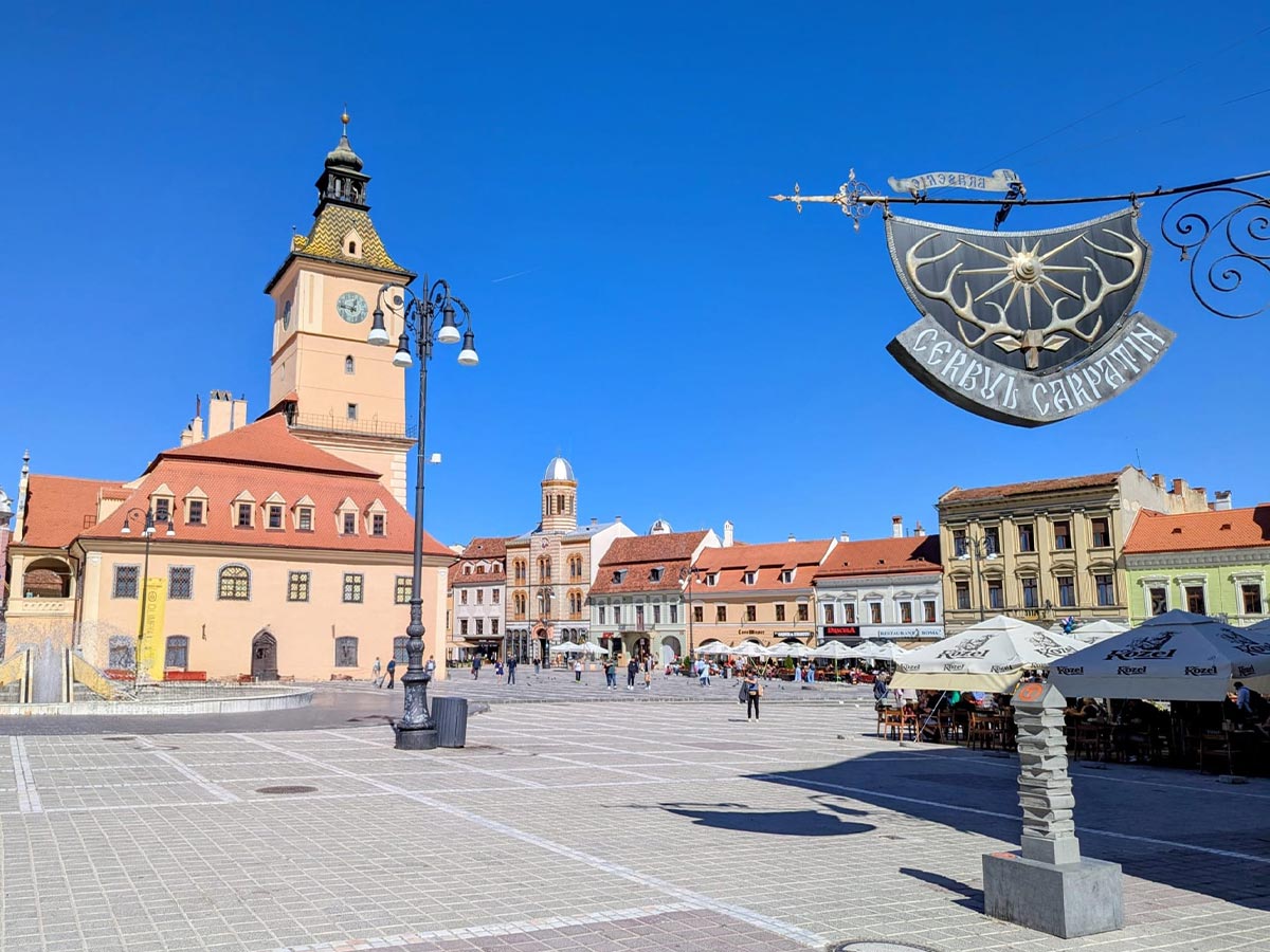 La place de la mairie se trouve au cœur de la vieille ville médiévale de Kronstadt et est bordée de magnifiques anciennes maisons de marchands. Autrefois connue des Saxons de Transylvanie sous le nom de place du marché, elle est depuis longtemps le centre civique de la ville.