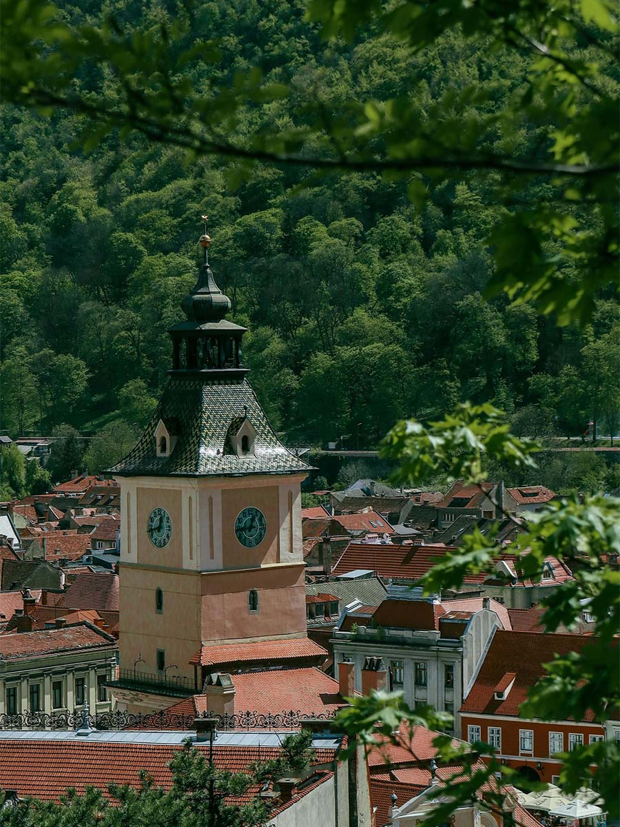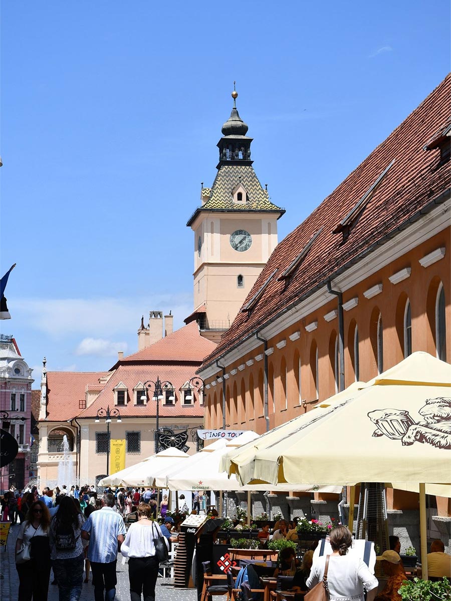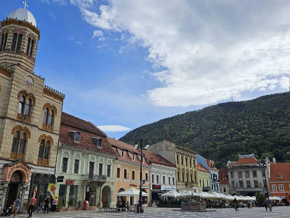 La place de la mairie se trouve au cœur de la vieille ville médiévale de Kronstadt et est bordée de magnifiques anciennes maisons de marchands. Autrefois connue des Saxons de Transylvanie sous le nom de place du marché, elle est depuis longtemps le centre civique de la ville.